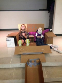 I had a small group of 2nd graders, yes 2nd graders, create a furniture item for the classroom. I used the same guidelines from my workshop and let the kids go at it. Guess what???? They were problem solving, collaborating, doing math, making design/engineering decisions all while thinking I was letting them play with cardboard.